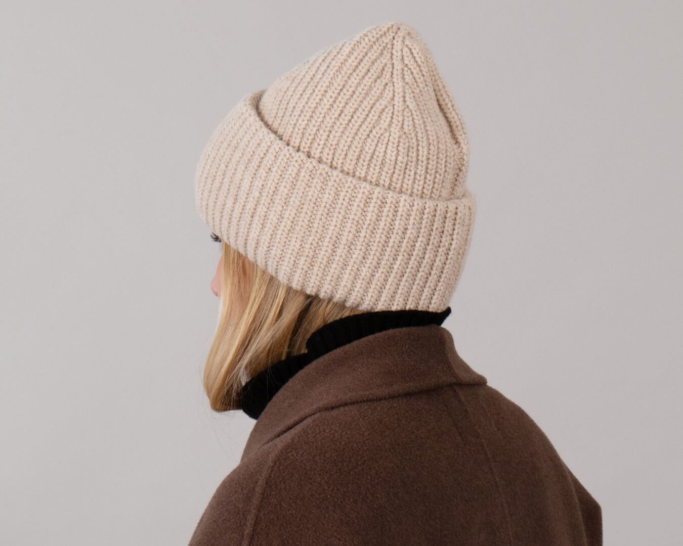 Rib-knitted beanie in undyed wool