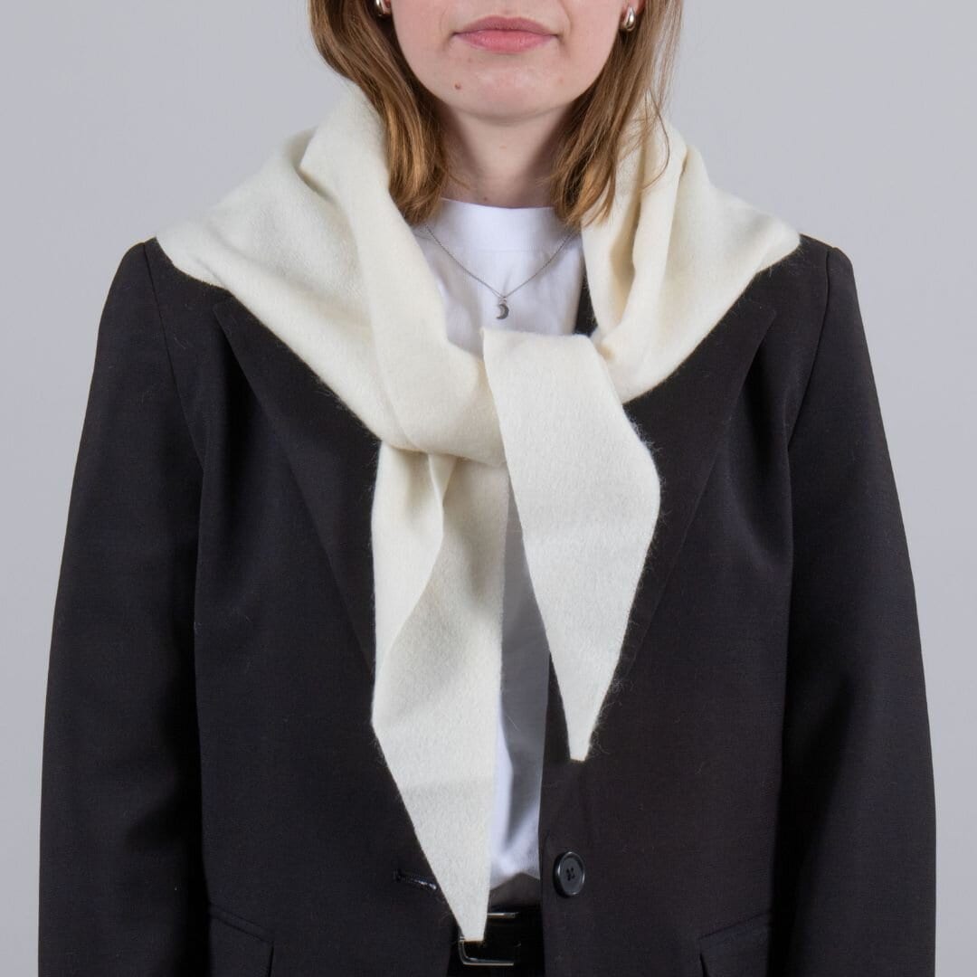 Triangle Scarf is a woven scarf in soft 100% wool with raw, unfinished edges all around. A versatile accessory that is easy to style for a more stylish look while providing extra warmth around the neck or over the shoulders, both indoors and layered under outerwear. One size, approx. 70 cm wide at the center and 200 cm long.