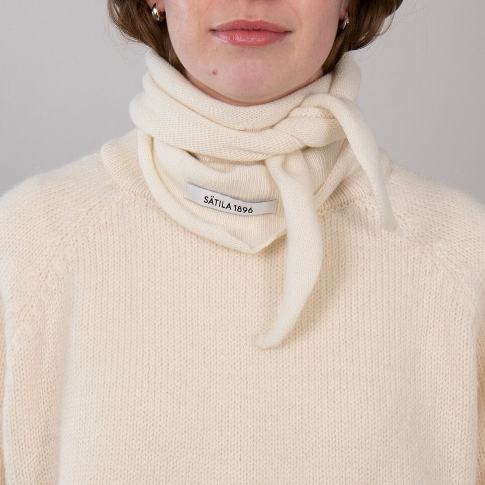 Elis triangle scarf är en stilren och tidlös finstickad scarf i 100 % mjuk, fin merinoull. Den lätta men värmande kvaliteten gör den till en användbar accessoar som tillför ett genomarbetat uttryck till din look. Den triangelformade scarfen kan knytas, viras eller stylas på flera sätt, vilket gör den enkel att anpassa efter olika stilar och tillfällen. Tillverkad i Sätila, Sverige. Finns i en storlek, ca 33 cm bred i mitten och 130 cm lång.